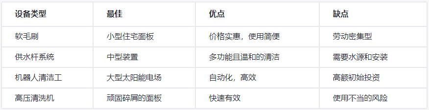 购买合适的太阳能清洁工具对于保持太阳能电池板的良好运行和延长其使用寿命非常重要。无论你负责的是小型住宅安装还是大型太阳能电站,都需要了解自己的需求,并根据设备的工作效果、价格以及对环境的影响进行比较。这将帮助你做出明智的决定。